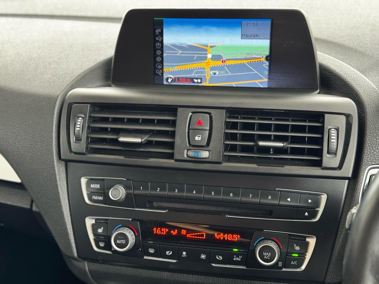 116i MOTORSPORT + NZ NEW + CRUISE CONTROL + STABILITY CONTROL + REVERSE CAMERA + NZ GPS + IDRIVE + MULTI FUNCTIONAL STEERING WHEEL + SMART KEY + FRONTREAR PARKING SENSORS + CLIMATE CONTROL + FRONT HEATED SEATS + 2 KEYS + ALCANTARA + PUSH START + REAR SPOILER + REAR WIPER + SPORTS MODE